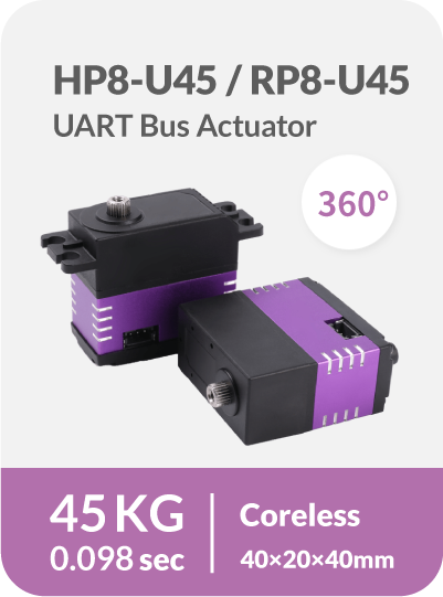 A two-way communication servo. User can customize the operation mode, feedback data, velocity control algorithms and protections. SDK is provided to fulfill the development under various platforms.