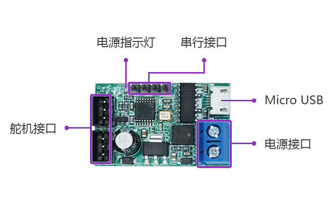 | Micro USB | 连接PC进行上位机调试及控制 |